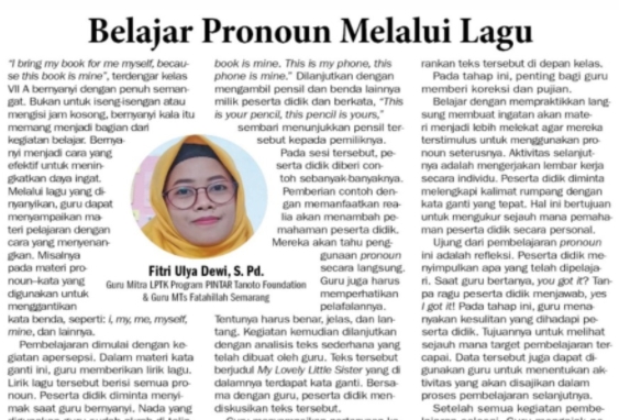 Irmayanti Swastika Nasution, SPd, Guru SMPN 3 Kisaran, Sumatra Utara dan Fasilitator Program PINTAR Tanoto Foundation Untuk membangkitkan minat siswa dalam belajar bahasa Inggris, Irmayant mencoba...