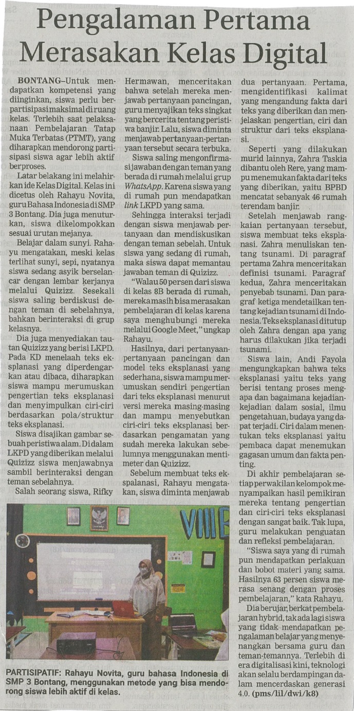 Untuk mendapatkan kompetensi yang diinginkan, siswa perlu berpartisipasi maksimal di ruang kelas. Terlebih saat pembelajaran tatap muka terbatas yang diharapkan mendorong partisipasi siswa agar lebih aktif berproses.