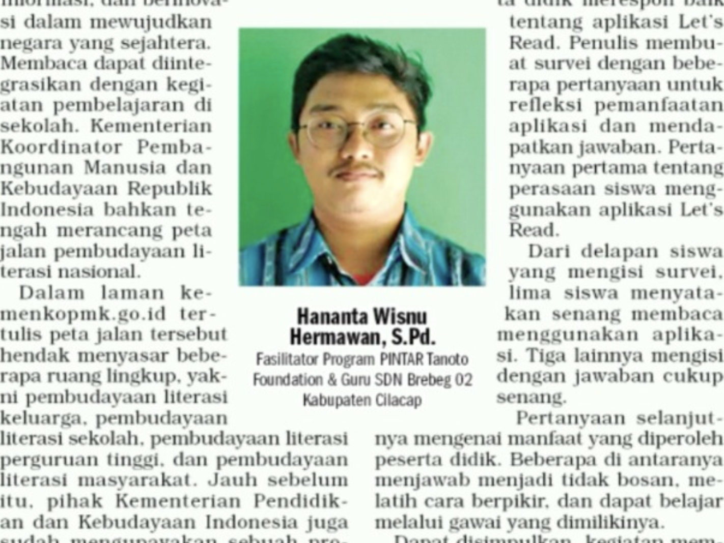 Hananta Wisnu Hermawan, SPd, guru SDN Brebeg 02, Kabupaten Cilacap, memanfaatkan aplikasi Let’s Read untuk mencari bahan bacaan bagi peserta didiknya Dalam aplikasi tersebut banyak cerita yang...