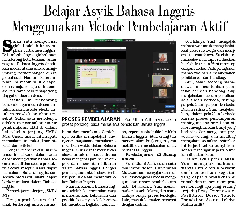 Pembelajaran di tengah pandemi Covid-19 memang menjadi tantangan berat Tidak hanya dituntut kemampuan akademiknya, para guru juga harus mampu menghadirkan pembelajaran yang kreatif dan