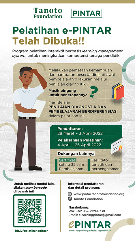 Pelatihan e-Pintar Batch 3, dimulai 4 April hingga 24 April 2022 e-PINTAR merupakan platform pembelajaran digital bagi para pendidik yang berisi materi peningkatan kemampuan pedagogi dan...