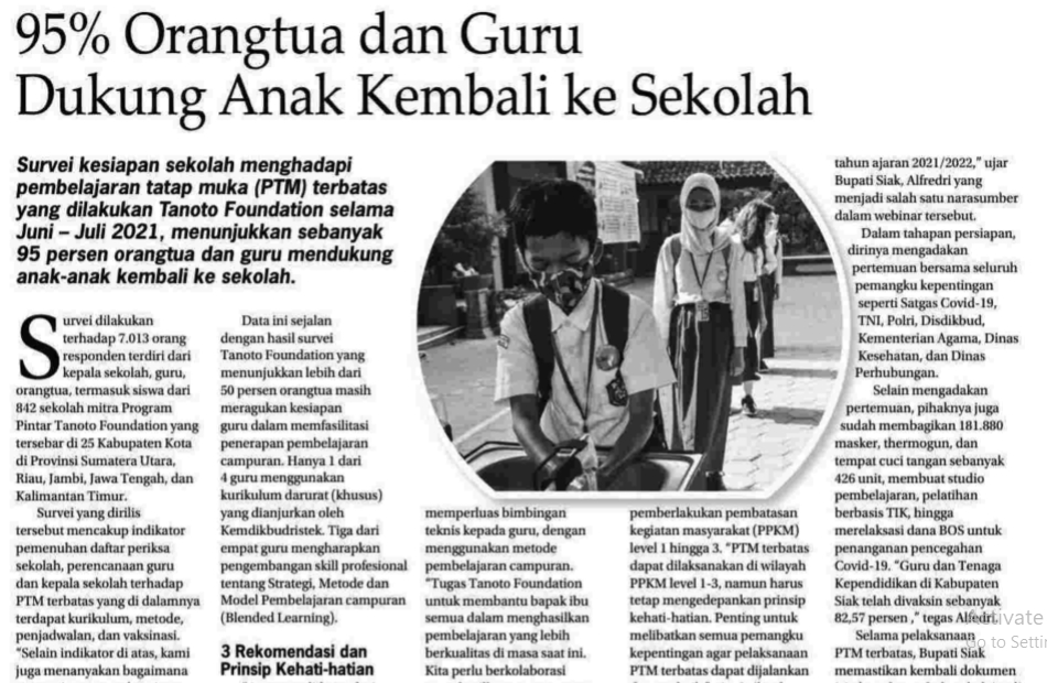 Survei dilakukan terhadap 7013 orang responden terdiri dari kepala sekolah, guru, orangtua, mitra Program Pintar Tanoto Foundation yang tersebar di 25 Kabupaten Kota di Provinsi Sumatera Utara Riau,...